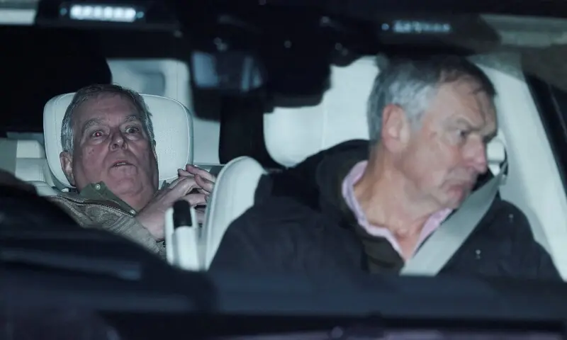 Andrew Mountbatten Windsor, młodszy brat brytyjskiego króla Karola, wcześniej znanego jako książę Andrzej, opuszcza komisariat policji w Aylsham w pojeździe w dniu, w którym został aresztowany pod zarzutem niewłaściwego postępowania na stanowisku publicznym, po tym, jak Departament Sprawiedliwości Stanów Zjednoczonych ujawnił więcej akt dotyczących zmarłego finansisty i skazanego przestępcy seksualnego Jeffreya Epsteina, w Aylsham w Wielkiej Brytanii, 19 lutego 2026 r. – Reuters
