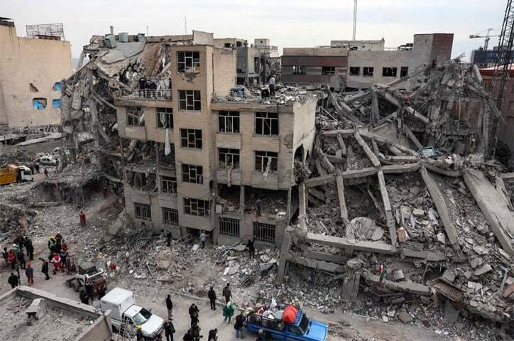 TEHRAN: Ratownicy zbierają się, gdy mieszkańcy zbierają swoje rzeczy z gruzów budynku mieszkalnego zniszczonego w wyniku strajków amerykańsko-izraelskich. – AFP