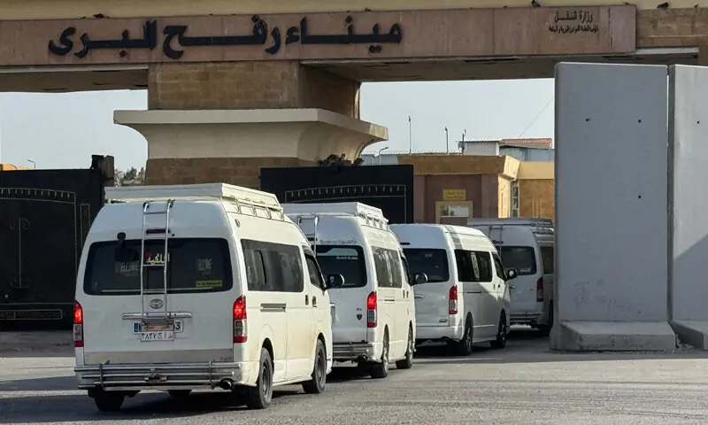 MINIBUSY przewożące Palestyńczyków do Strefy Gazy ustawiają się po egipskiej stronie przejścia granicznego w Rafah. – AFP