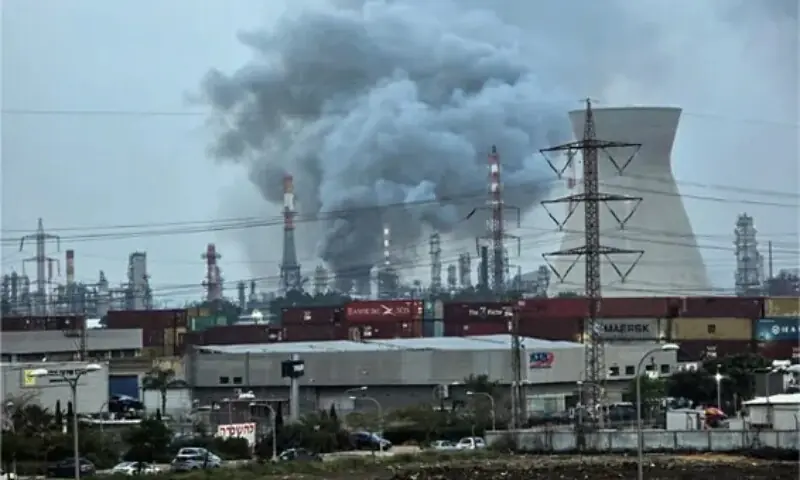 Dym wznosi się po irańskiej salwie odwetowej, która uszkodziła izraelską rafinerię ropy naftowej w Hajfie. – Reuters