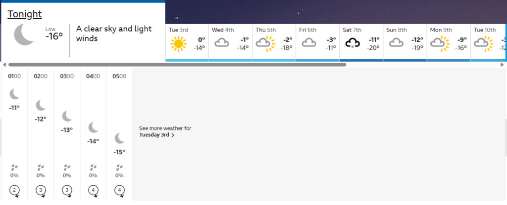 Wieczorem i w nocy prognozowany jest dalszy spadek do około -15 stopni Celsjusza. Ujemne temperatury utrzymają się przez cały dzień, dlatego zaleca się odpowiednie przygotowanie przed wyjściem na zewnątrz.
